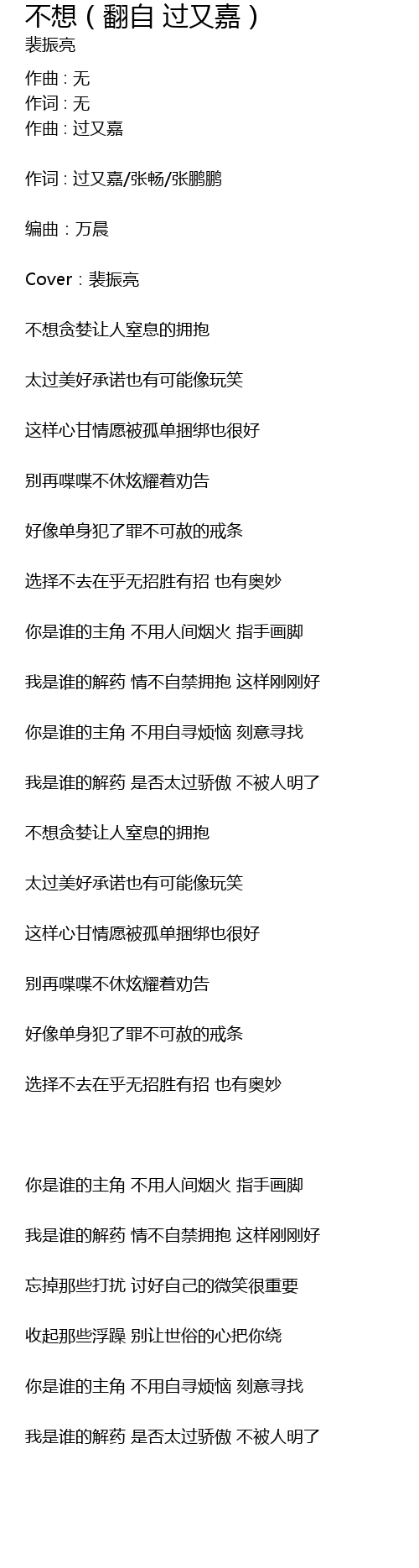 | 作词 : 过又嘉/张畅/张鹏鹏 | |