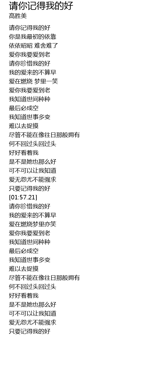 | [01:51.46] | zhǐ yào jì de wǒ de hǎo |