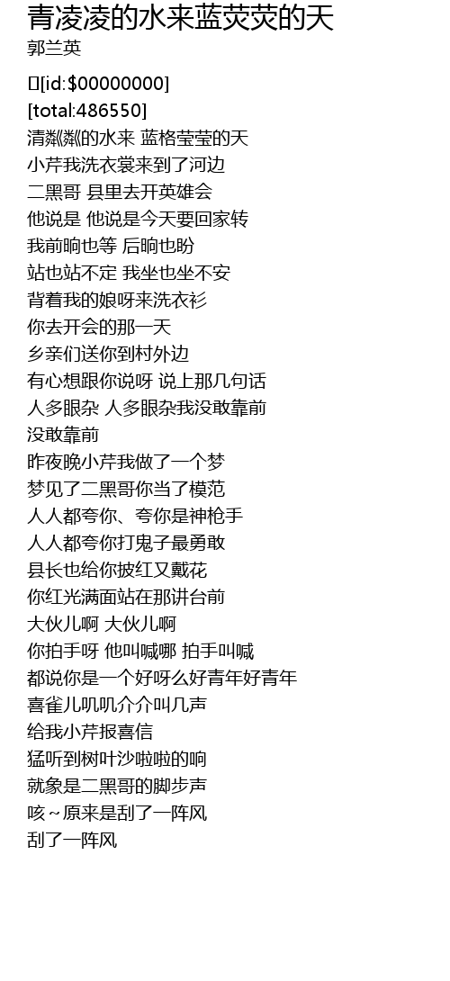 | [01:55.760] | qing lin lin de shui lai lan ge ying ying de tian |