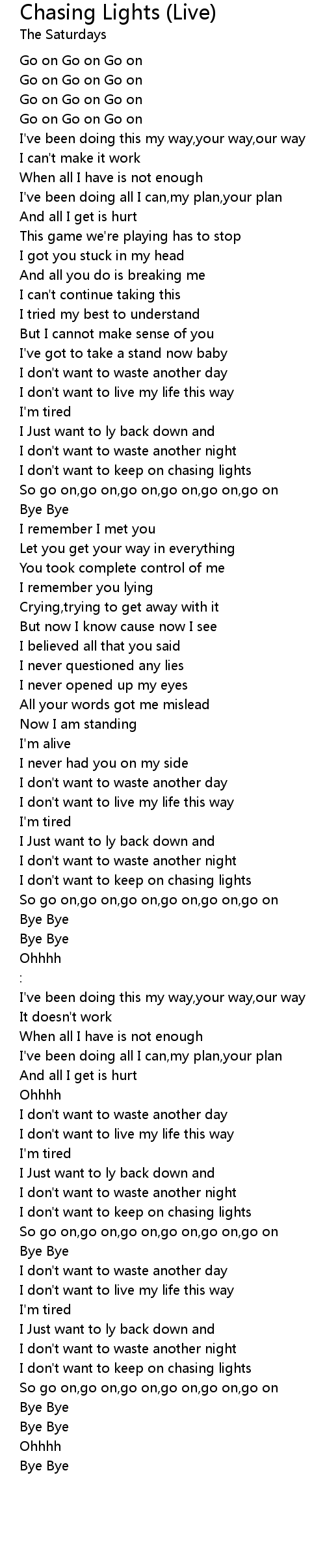 I don't want to keep on chasing lights |