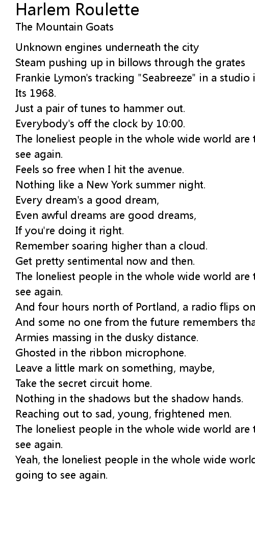 The loneliest people in the whole wide world are the ones you're never going to see again.