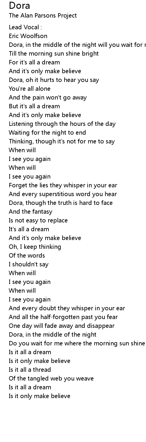 Dora, oh it hurts to hear you say |