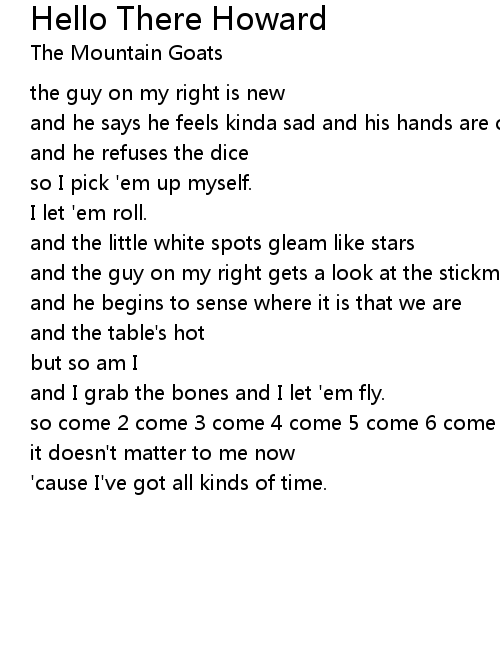 | Song | Hello There Howard |