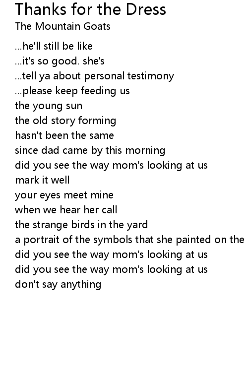 | Song | Thanks for the Dress |
