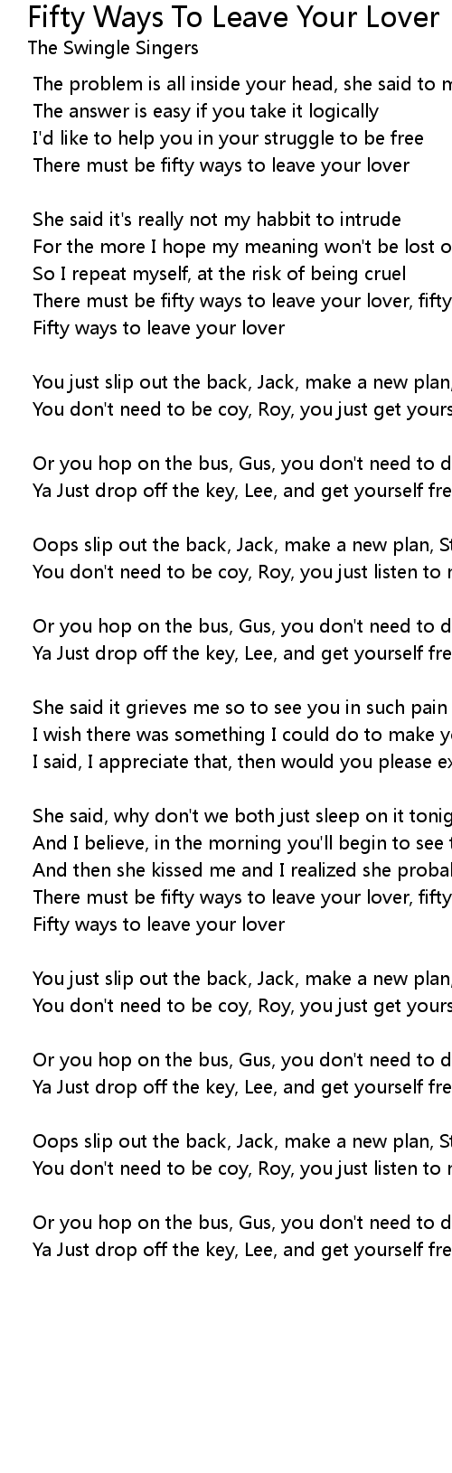 There must be fifty ways to leave your lover, fifty ways to leave your lover |