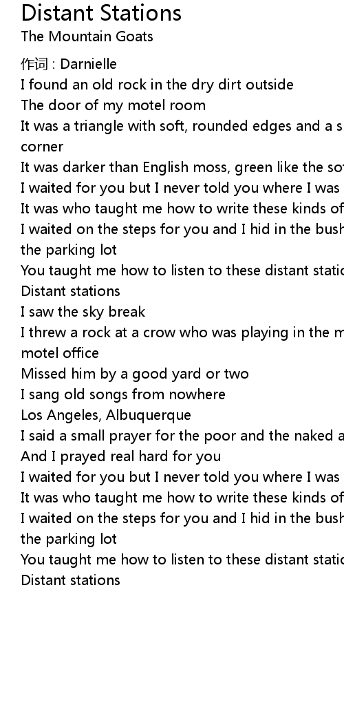 | Song | Distant Stations |