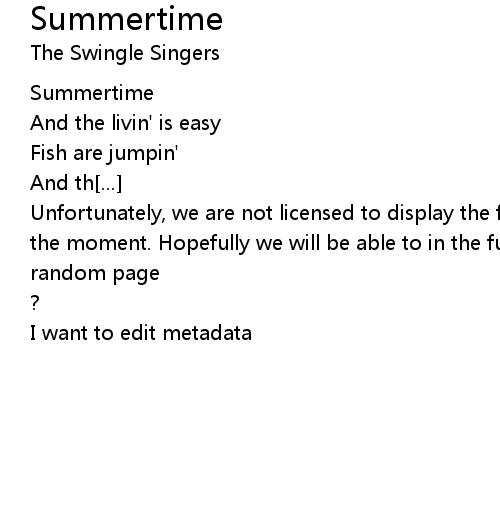 | Unfortunately, we are not licensed to display the full lyrics for this song at the moment. Hopefully we will be able to in the future. Until then, how about a | |
