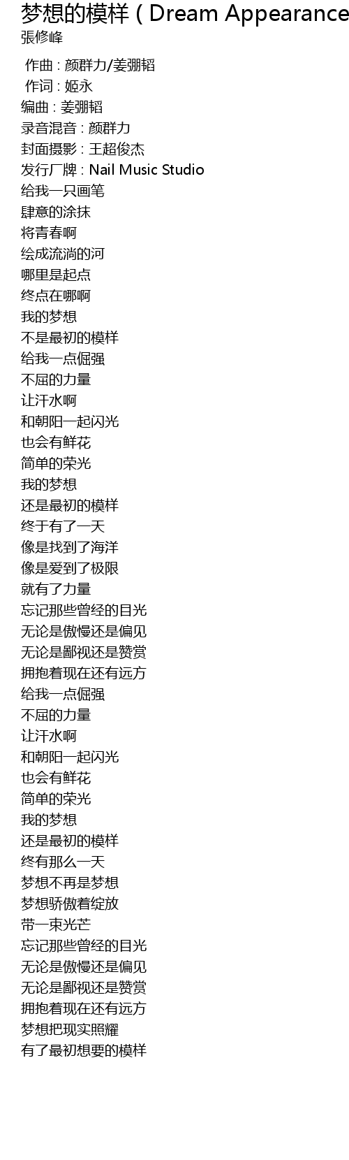 | Album | 梦想的模样 ( Dream Appearance ) |