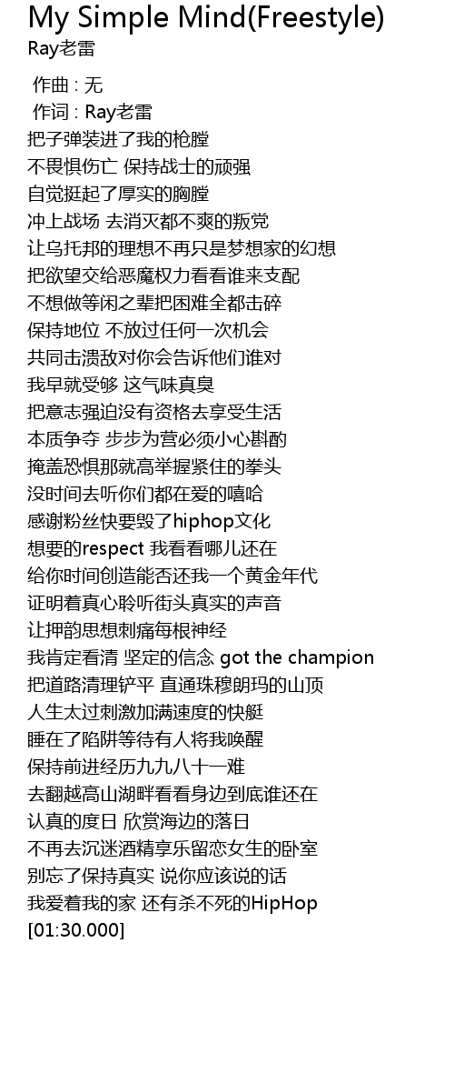 | [01:26.714] | 我爱着我的家 还有杀不死的HipHop |