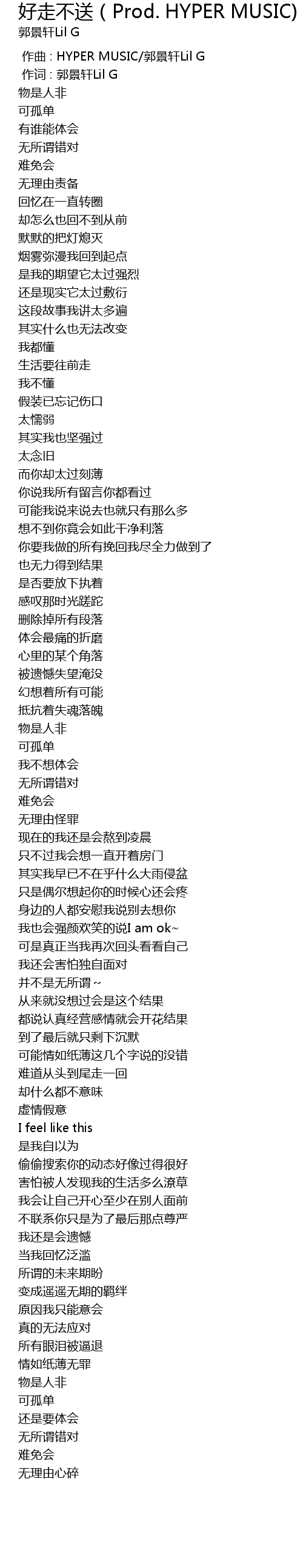 | [00:00.000] | zuò qǔ : HYPER MUSIC guō jǐng xuān Lil G |