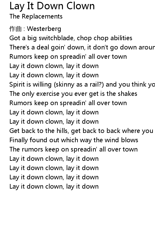 | Lay it down clown, lay it down | |