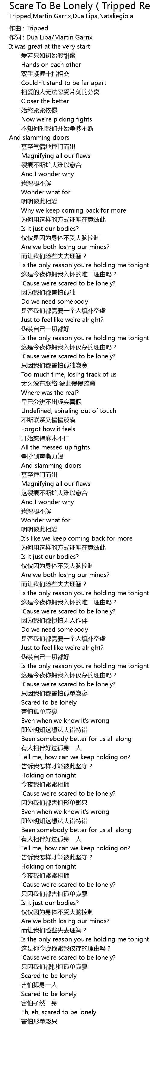 | Song | Scare To Be Lonely(Tripped Remix) |