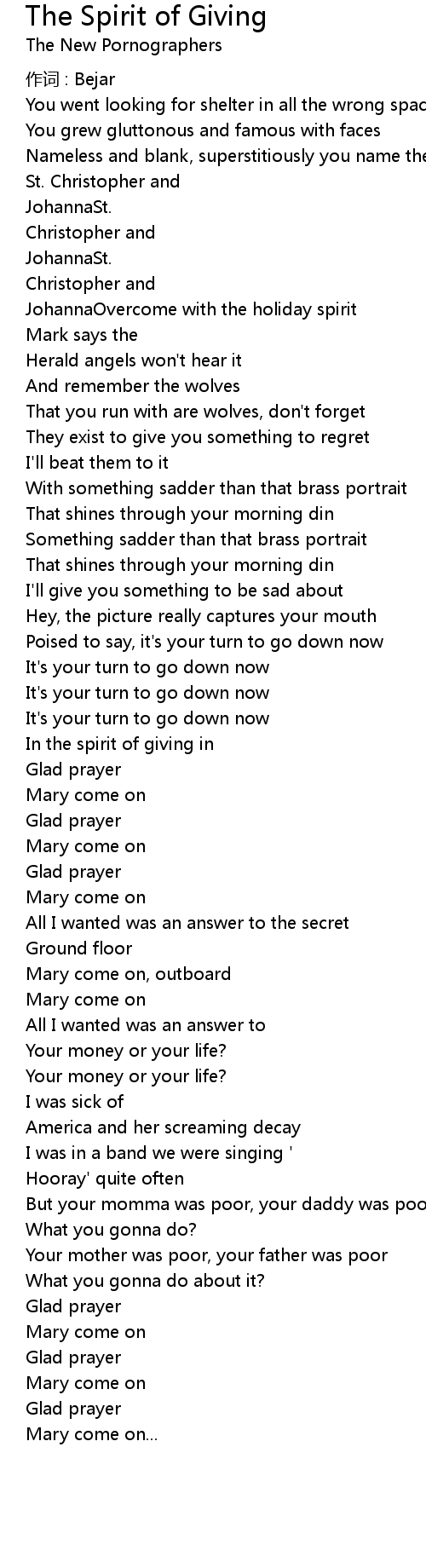 | Song | The Spirit of Giving |