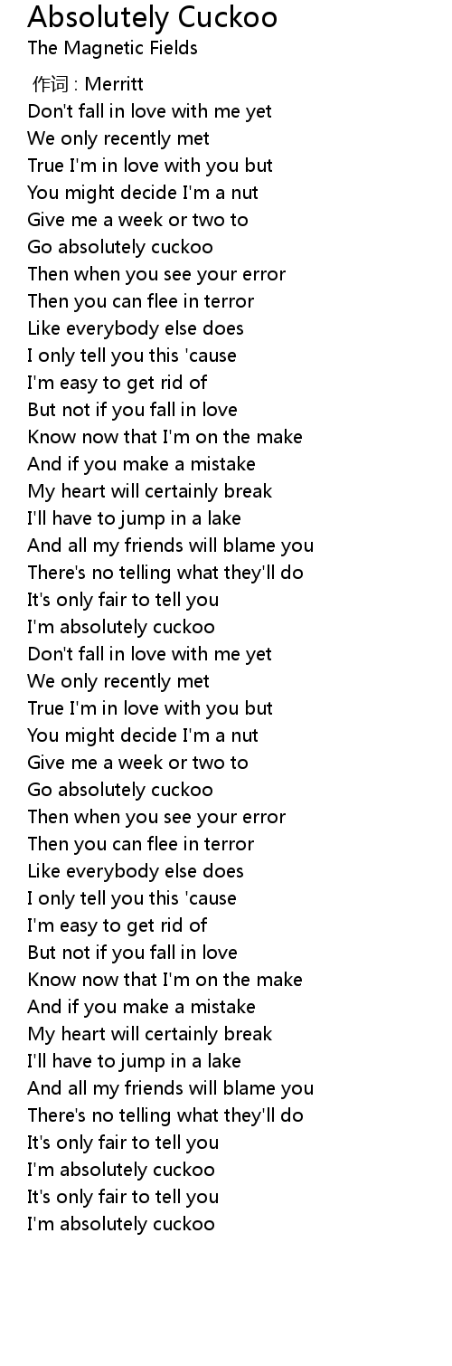 | [00:35.41] | I'm absolutely cuckoo |