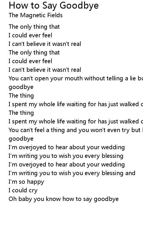 You can't feel a thing and you won't even try but baby, you know how to say goodbye |