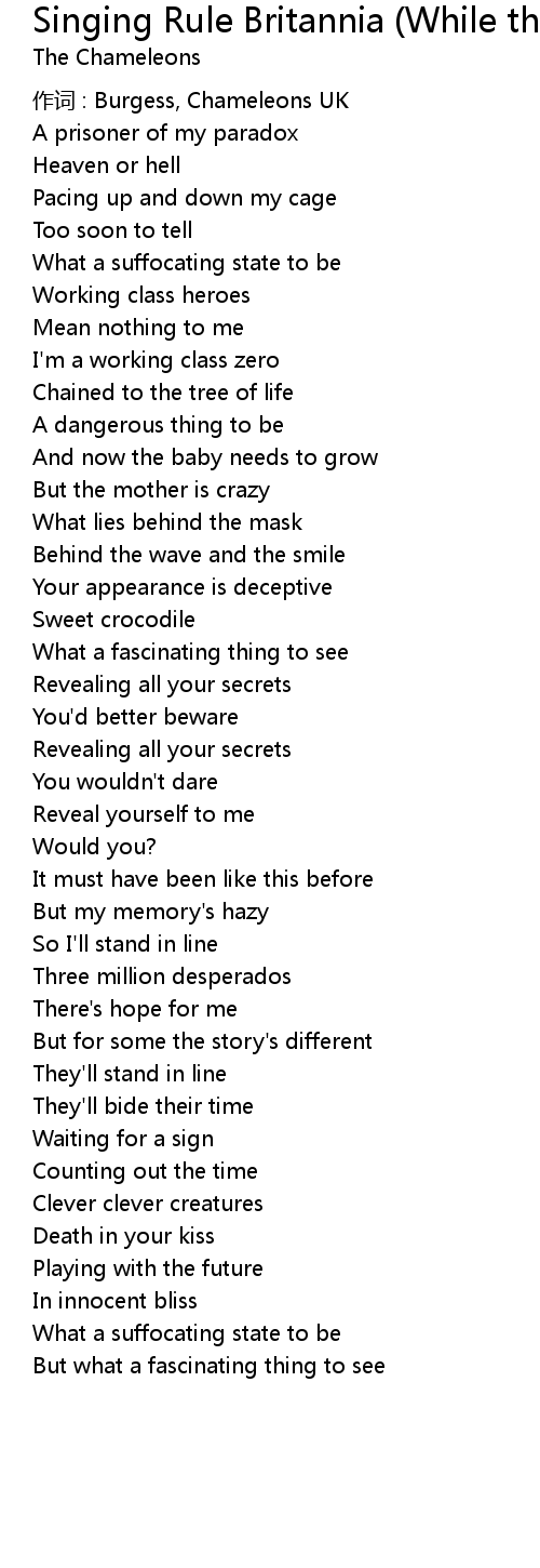 | Song | Singing Rule Britannia (While the Walls Close In) |