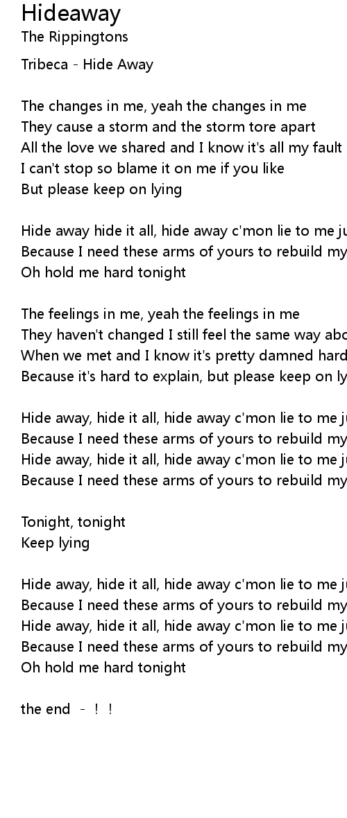| Hide away, hide it all, hide away c' mon lie to me just on more time | |