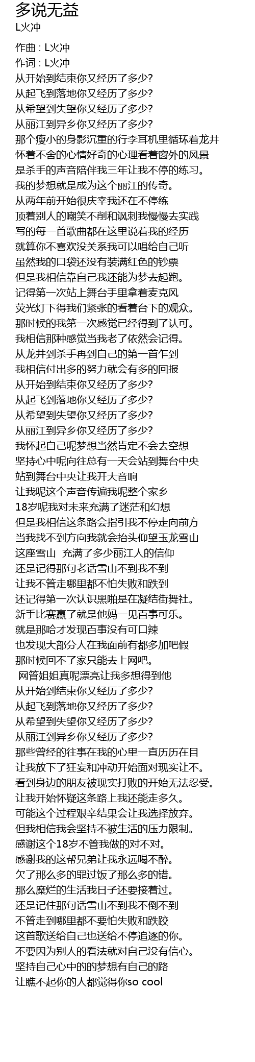 | 写的每一首歌曲都在这里说着我的经历 | |