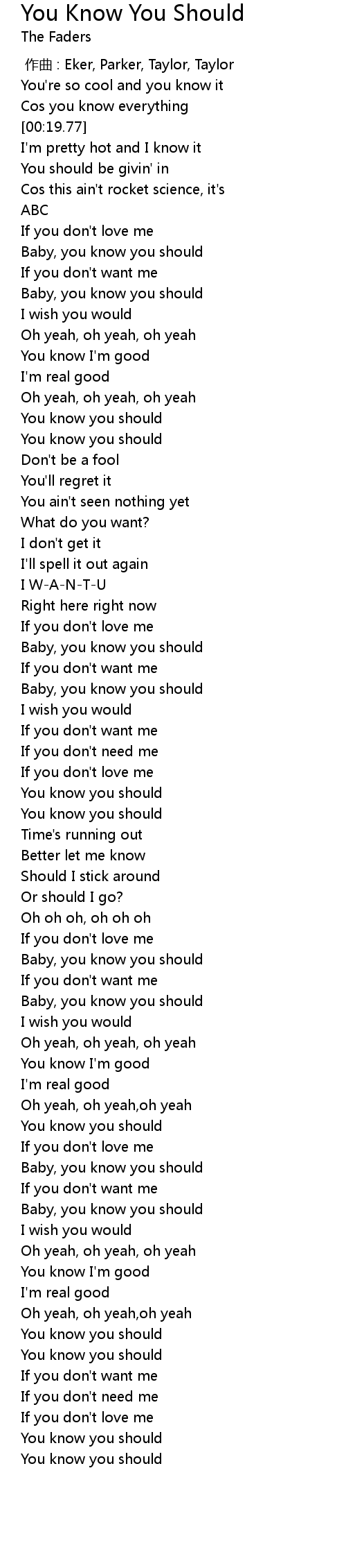 | [00:34.16] | Baby, you know you should |