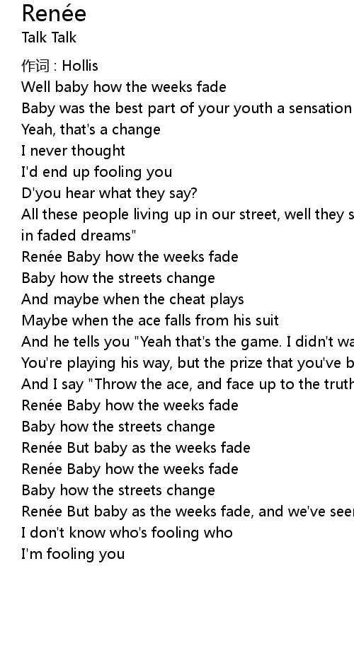 | Rene e But baby as the weeks fade, and we' ve seen quite a few, | |