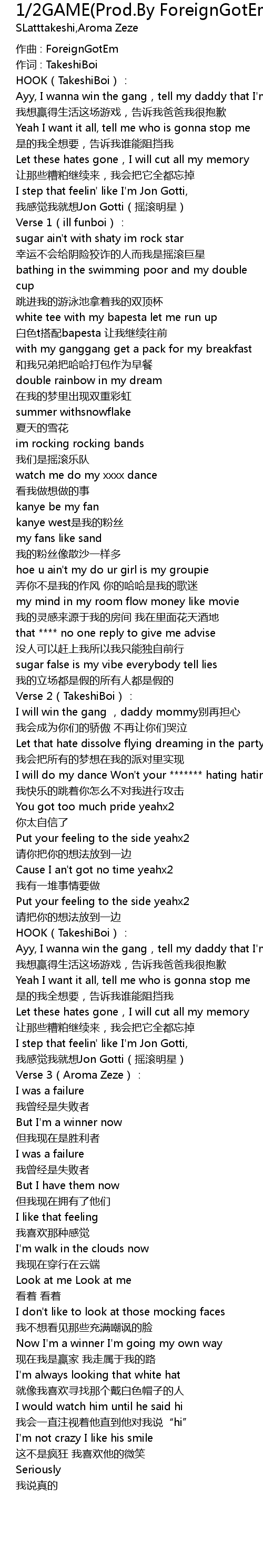 | Song | 1/2GAME(Prod.By ForeignGotEm) |