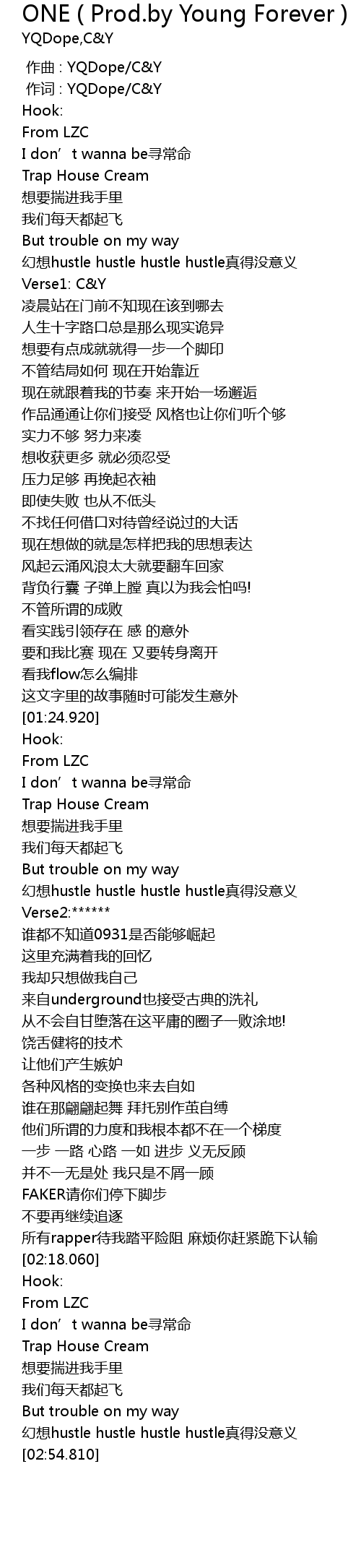 | [00:01.000] | 作词 : YQDope/C&Y |