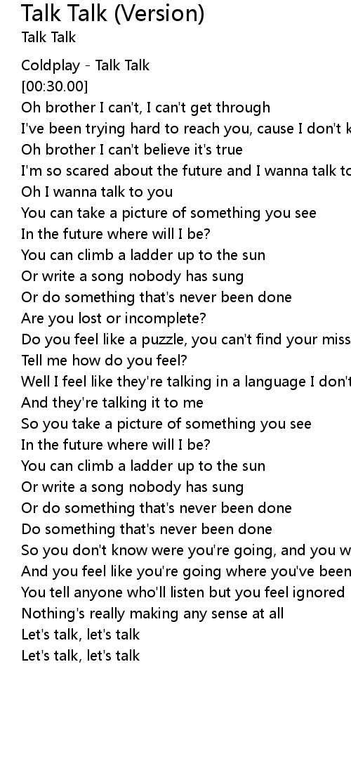 | [00:15.00] | Coldplay - Talk Talk |