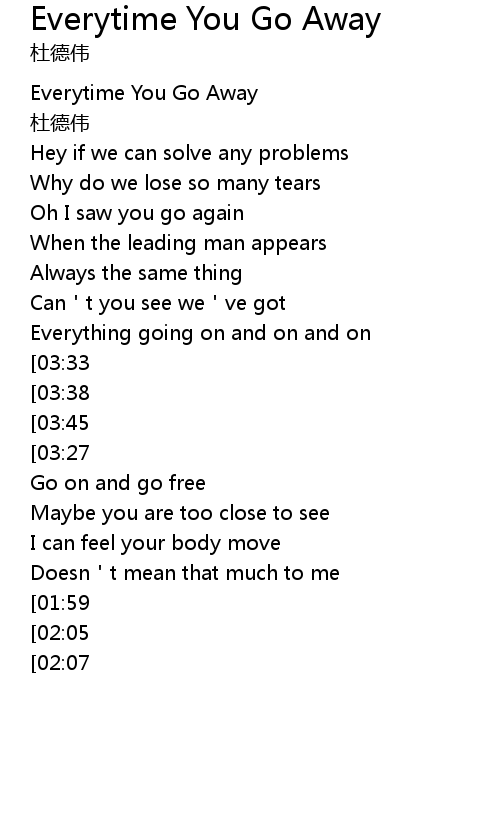 | [03:57][03:33][03:10][02:11][01:01] | Everytime you go away |