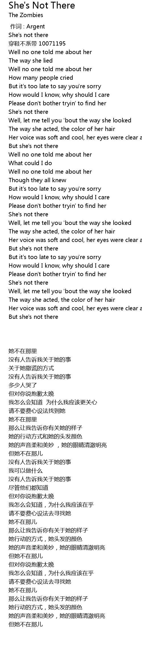 | [00:00.92] | She' s not there |