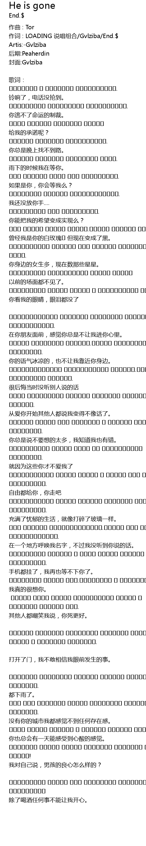 | 作词 : LOADING 说唱组合/Gvlziba/End.$ | |