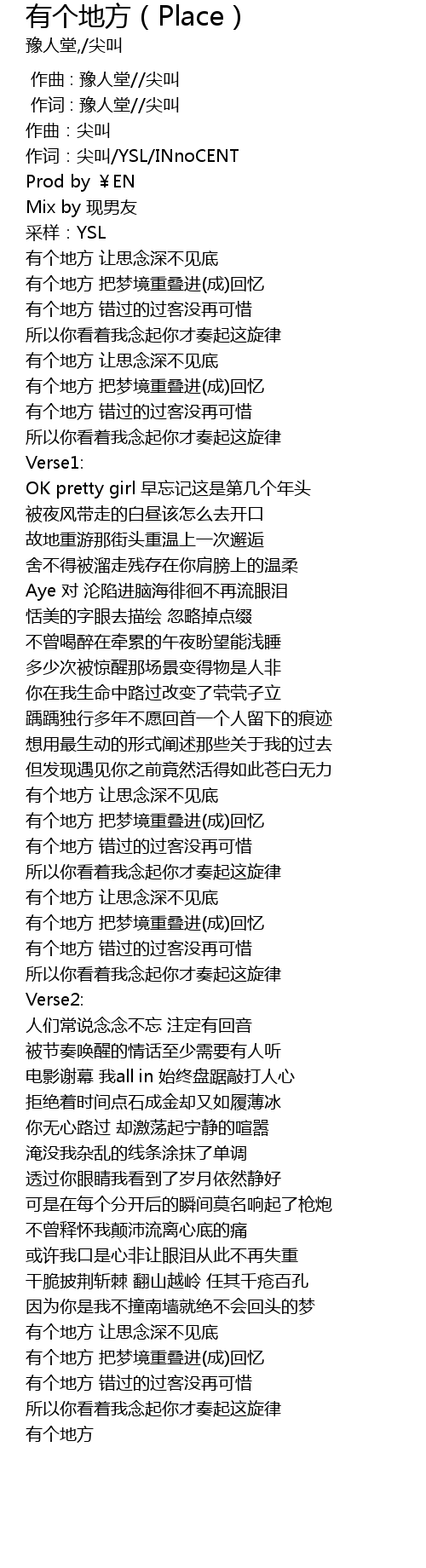 | [00:03.689] | 作词:尖叫/YSL/INnoCENT |