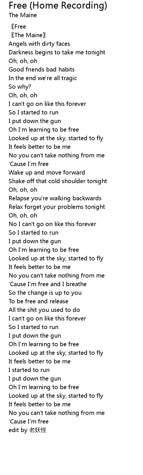 | [00:54.72] | ' Cause I' m free |
