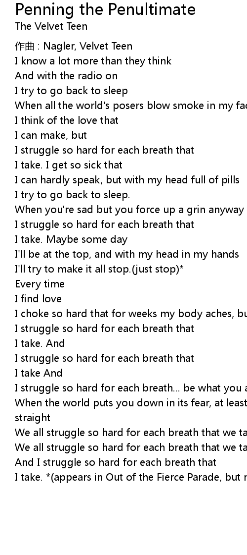 | I take. *(appears in Out of the Fierce Parade, but not Plus Minus Equals) |