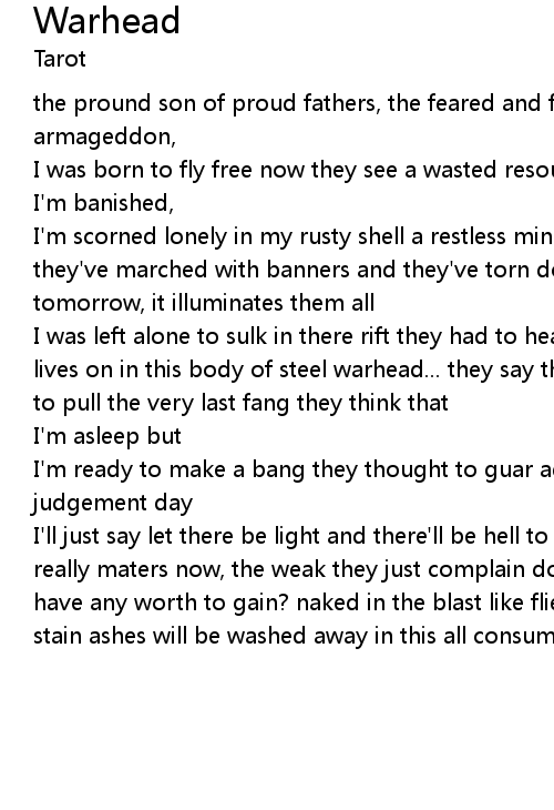I'm scorned lonely in my rusty shell a restless mind hellspawned warhead... they've marched with banners and they've torn down the wall onware to new tomorrow, it illuminates them all |