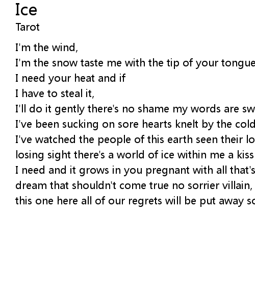 I need and it grows in you pregnant with all that's lost a flower of the moon a dream that shouldn't come true no sorrier villain, a lover more sinister but this one here all of our regrets will be put away soon the ice will be clear |