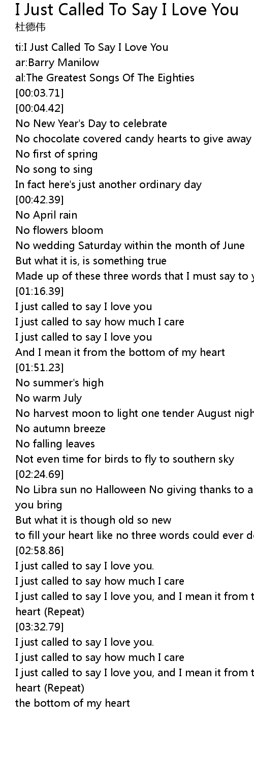 I just called to say I love you, and I mean it from the bottom of my heart (Repeat) |