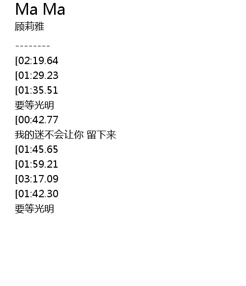 | [02:32.23][01:35.51][00:38.91] | ma ma 为谁伤了心 |