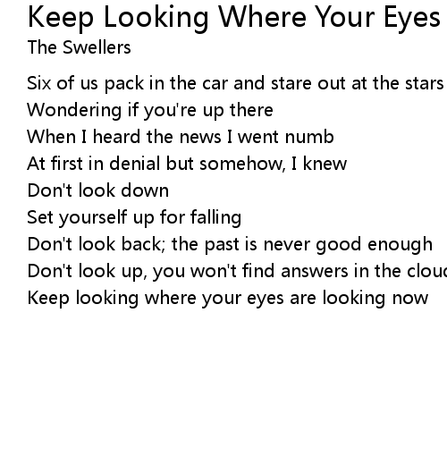 | Song | Keep Looking Where Your Eyes Are Looking Now |