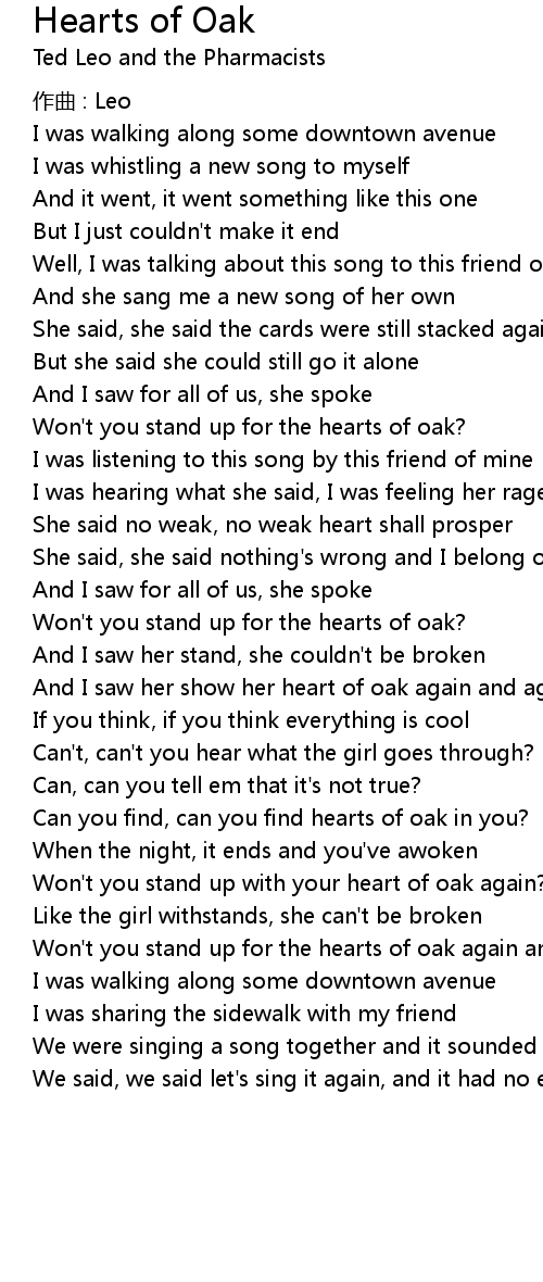 | Won' t you stand up for the hearts of oak again and again and again and again? | |