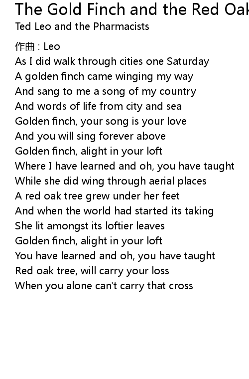 | Song | The Gold Finch and the Red Oak Tree |