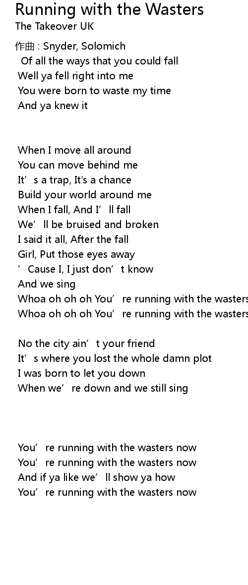 | Whoa oh oh oh You’re running with the wasters now | |