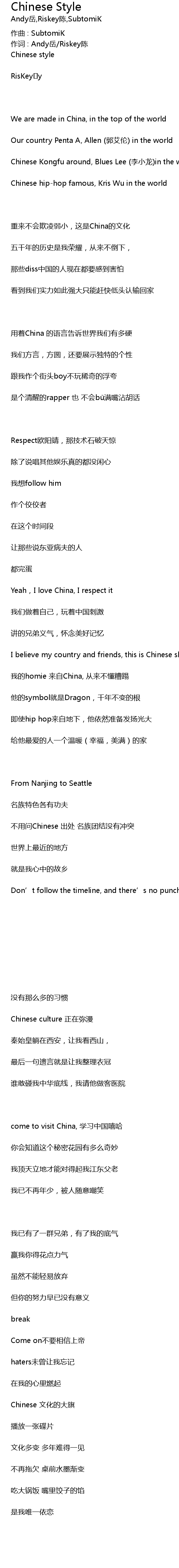 | 我的homie 来自China, 从来不懂糟蹋 | |