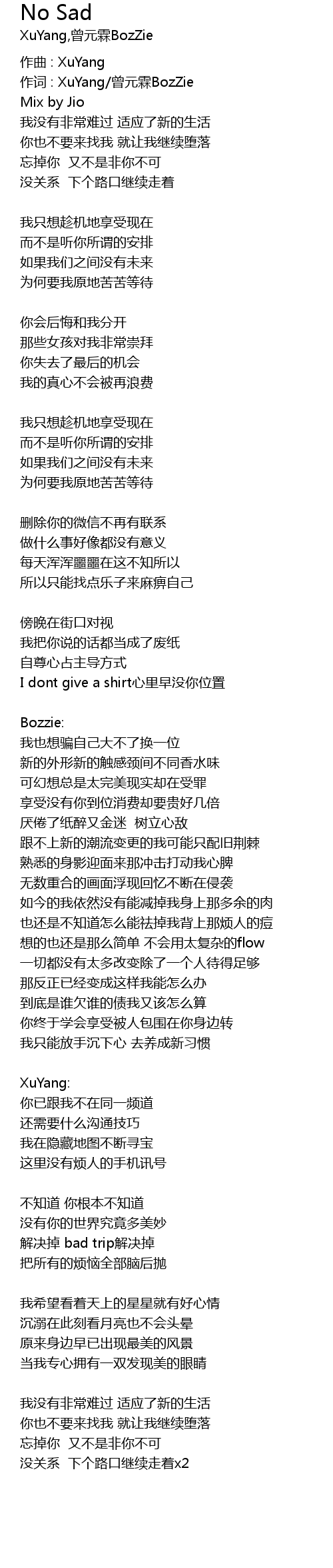 | 作词 : XuYang/曾元霖BozZie | |
