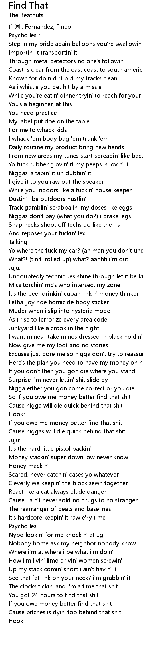 | Yo where the fuck my car? (ah man you don't understand) | |