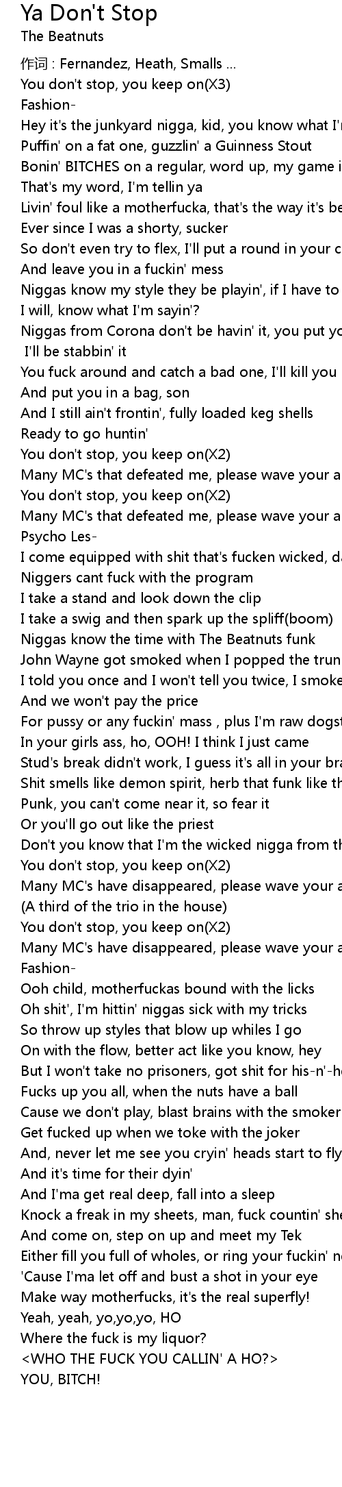 | For pussy or any fuckin' mass , plus I' m raw dogstyle | |