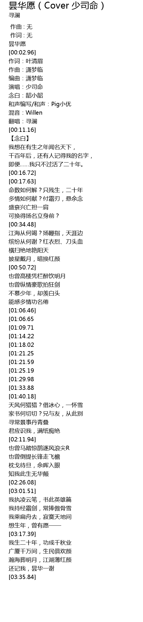 | [00:10.47] | 翻唱:寻澜 |