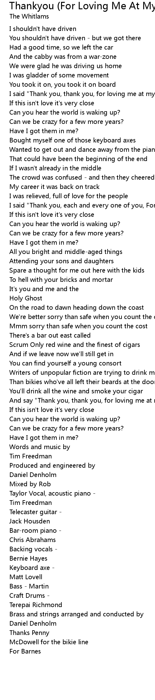 I said "Thank you, each and every one of you, For loving me at my worst" |
