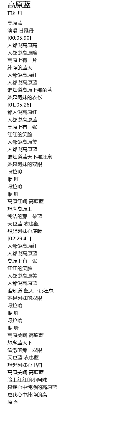 | [01:29.24] | rén dōu shuō gāo yuán lán |