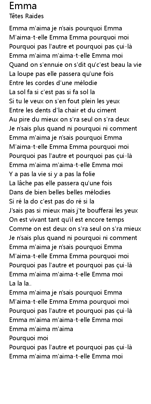 | Emma m'aima m'aima-t-elle Emma moi | |