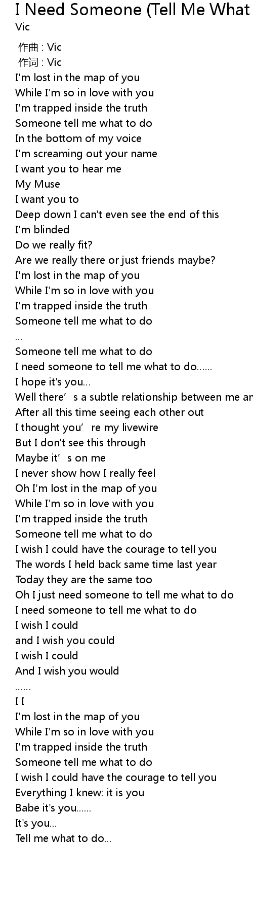 | [02:01.494] | Oh I just need someone to tell me what to do |
